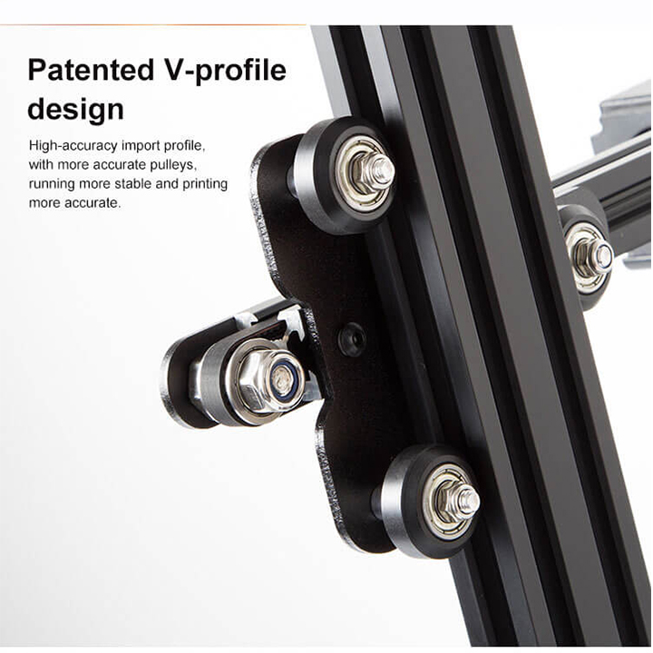 _Bánh xe "V-Slot" bằng nhựa nhiệt kỹ thuật POM cung cấp độ ổn định kích thước tuyệt vời ngay cả trong thời gian sử dụng kéo dài. Việc loại bỏ các thanh thép kim loại trên kim loại giúp giảm tiếng ồn đáng kể.