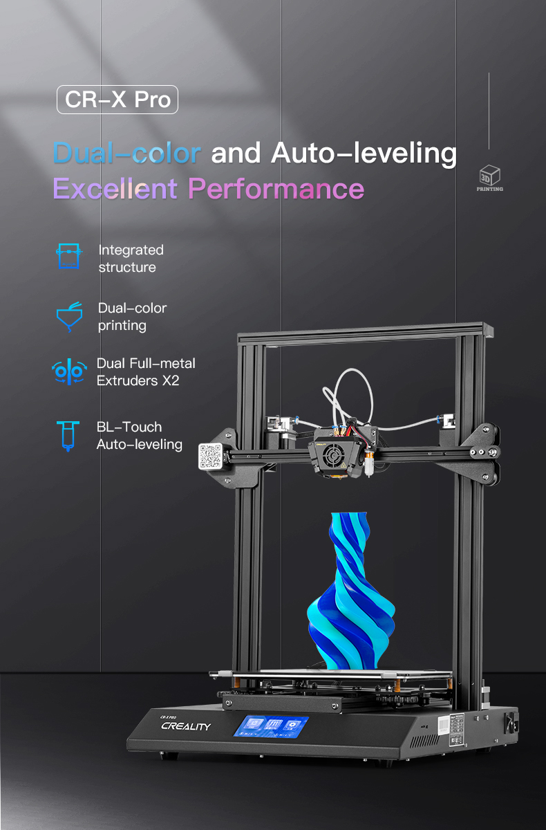 _Máy in 3d máy đùn kép mới được phát hành CR-X Pro của Creality cho phép bốn chế độ in màu, không giống như máy in 3d CR-X, BL-Touch để tự động cân bằng.
