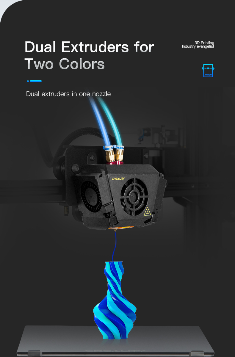 _Là một công ty in 3d chuyên nghiệp phát triển nhanh, Creality tập trung vào phát triển sản phẩm. CR-X Pro đi kèm với loại máy đùn kép giống như người tiền nhiệm của nó, thiết kế một đầu phun, hai màu.