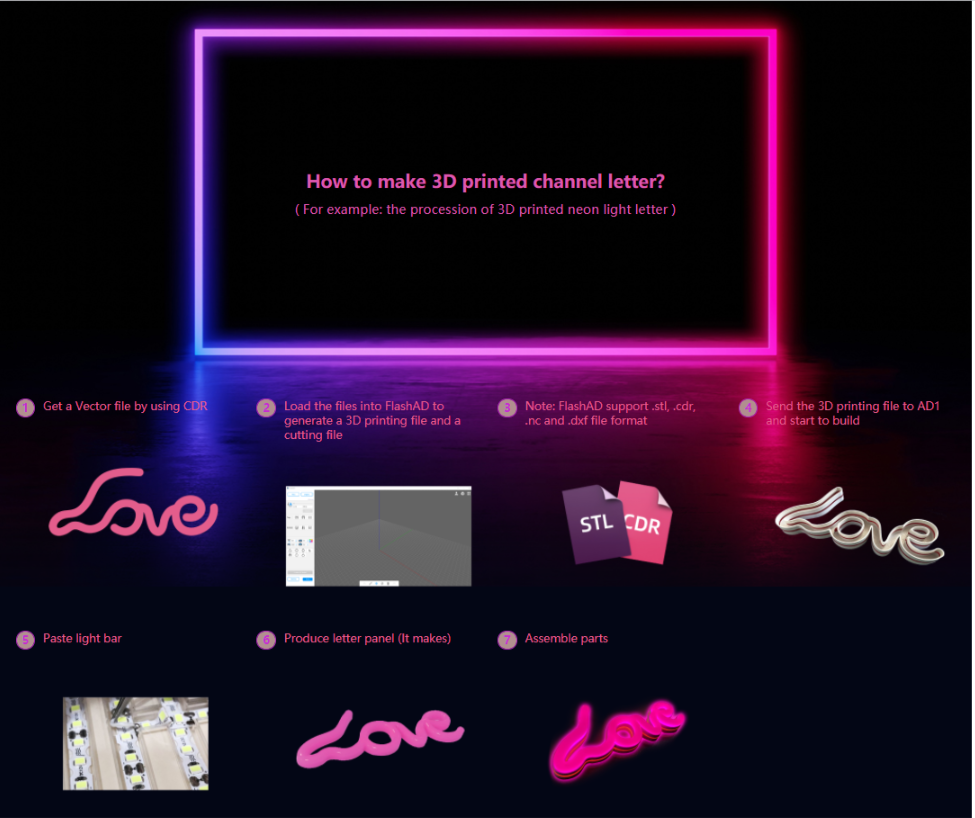 _Được trang bị nền tảng đám mây chuyên dụng hỗ trợ quản lý từ xa trên nhiều thiết bị, Flashforge AD1 sáng tạo cho chữ cái 3d của chúng tôi có thể nâng cao năng suất và giảm nhân lực; hơn nữa, với Flashforge AD1 của chúng tôi, có nhiều lựa chọn về phông chữ và màu sắc hơn, đồng thời các dấu hiệu và chữ cái có thể được đưa vào sản xuất hàng loạt mà không tạo ra bất kỳ bụi hoặc khói thải nào.