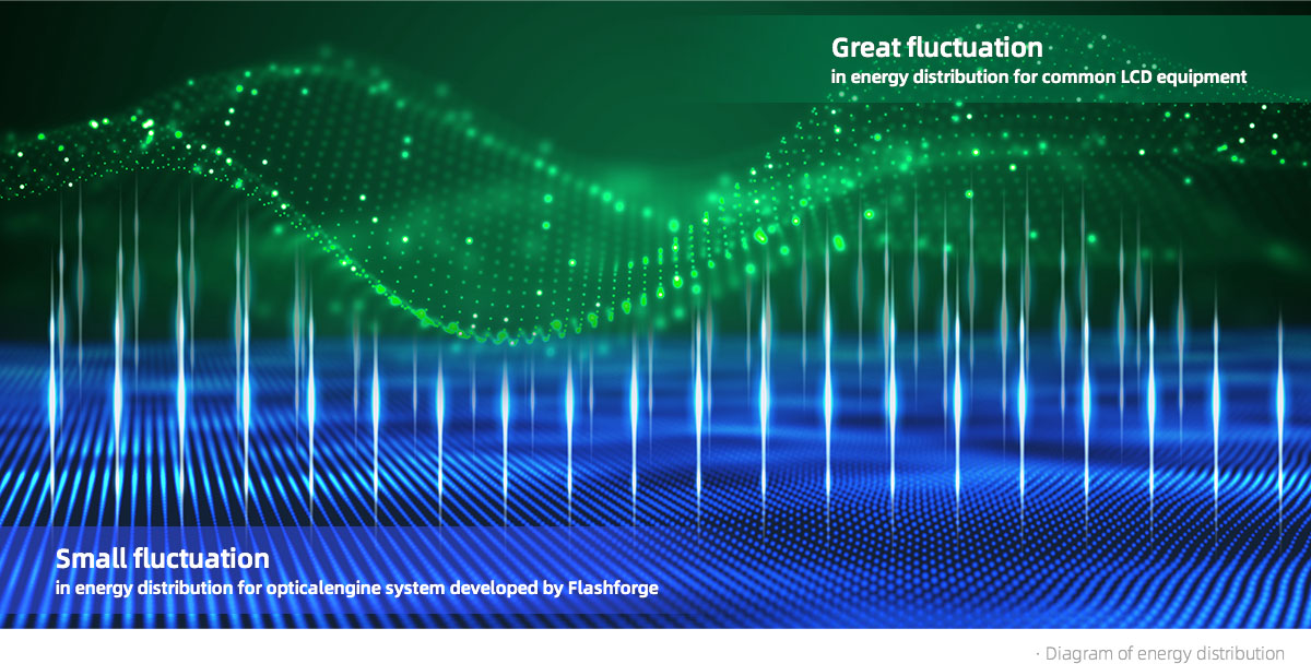 Hệ thống động cơ quang học do Flashforge phát triển cho phép chênh lệch phân bổ năng lượng nhỏ hơn 10%. Bằng cách này, hơn 90% bản in được hứa hẹn về độ chính xác và tỷ lệ thành công được cải thiện lên 30%.