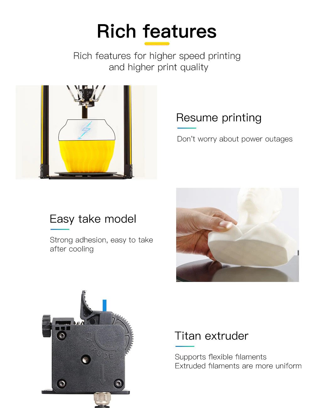 _Q5 là một máy in 3D rất tiết kiệm chi phí. Nó được lắp ráp sẵn và có độ chính xác và tốc độ in cao. Nó có khối lượng nhỏ nhưng có các chức năng mạnh mẽ như bo mạch chủ 32-bit mạnh mẽ, cân bằng tự động, màn hình cảm ứng, v.v. Nó được tùy chỉnh đặc biệt cho người mới bắt đầu.