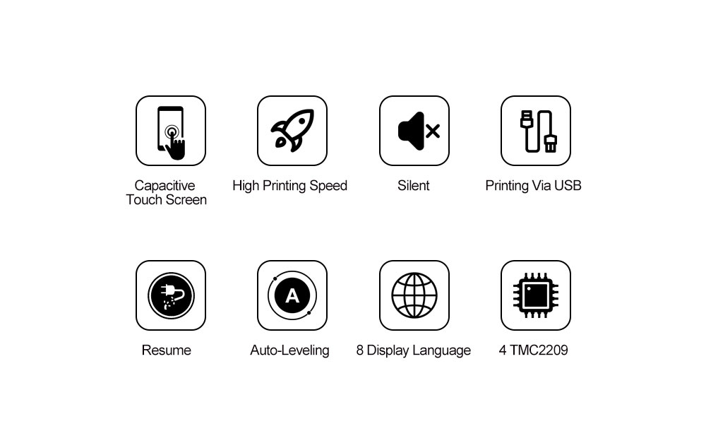 +Dẫn hướng tuyến tính chính xác với dây đai 10mm, độ cứng vững và độ chính xác cao, với mô-men xoắn lớn 48mm, tốc độ cao, tiếng ồn thấp, động cơ bước chính xác cao, nó không chỉ đảm bảo sức mạnh chuyển động mà còn đảm bảo độ chính xác in tốc độ cao.