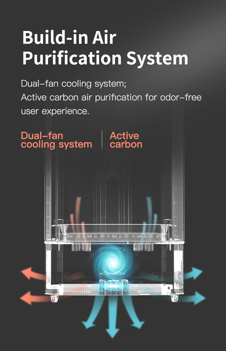 _Hệ thống lọc không khí tích hợp: Hệ thống làm mát quạt kép; Lọc không khí bằng carbon hoạt tính cho trải nghiệm người dùng không có mùi.